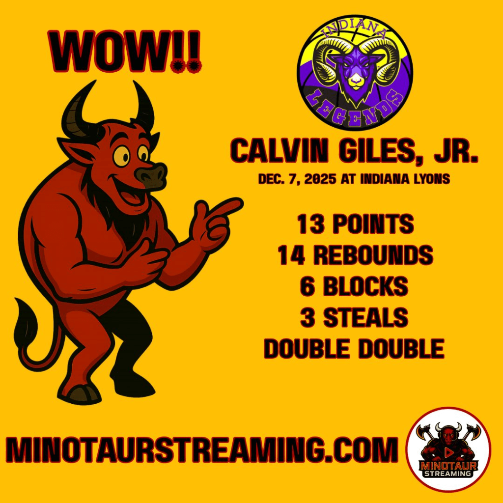 If you watched our broadcast of Sunday’s Indiana Legends game, you know that we were amazed by Calvin Giles, Jr.’s performan– Oof! Just got blocked. As we were saying, Calvin had a whole bunch of blo– Dang it! Just got blocked again! Calvin had a whole bunch of blocks and rebou– OH, COME ON!! KNOCK IT OFF, CALVIN!!! (Until Saturday’s game, that is, and then block away!) A double-double, SIX blocks, and 3 steals for Calvin Giles, Jr. WOW!!