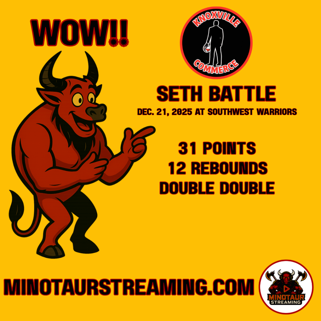 Seth Battle’s trip to Georgia was just peachy on Sunday when he and his Knoxville Commerce visited. He racked up 31 points and 12 rebounds to notch a double-double and help the Commerce register their third consecutive win! Great job, Seth! WOW!!