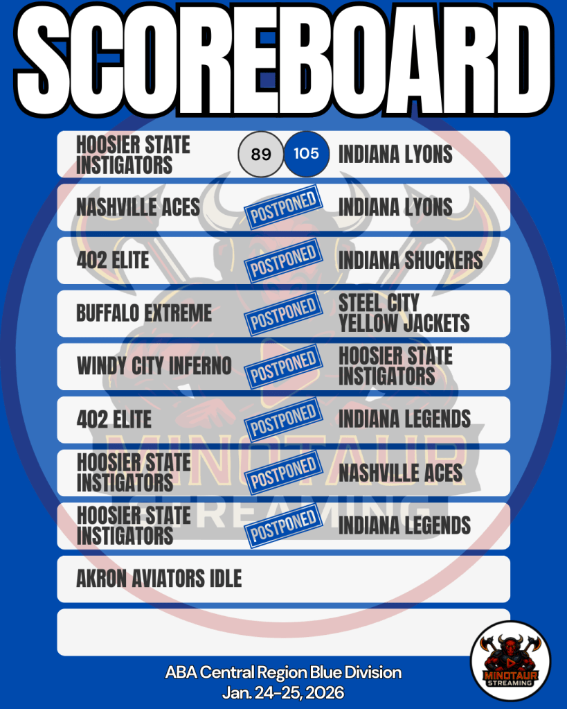 These are unofficial results from Week 15 in the American Basketball Association (ABA) Central Region Blue Division. Minotaur Streaming is in no way hired by, paid by, approved by, associated with, acknowledged by, related to, or in any other fashion connected to the ABA. We’re not even sure the ABA knows we exist.