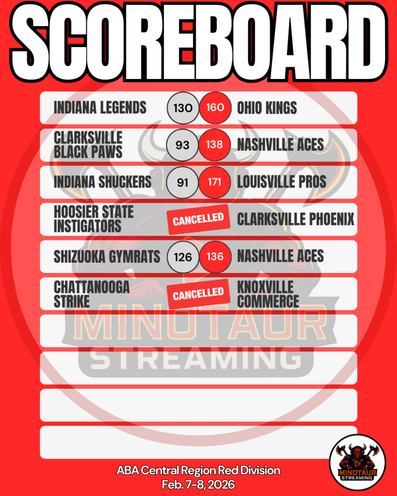 These are unofficial results from Week 17 in the American Basketball Association (ABA) Central Region Red Division. Minotaur Streaming is in no way hired by, paid by, approved by, associated with, acknowledged by, related to, or in any other fashion connected to the ABA.